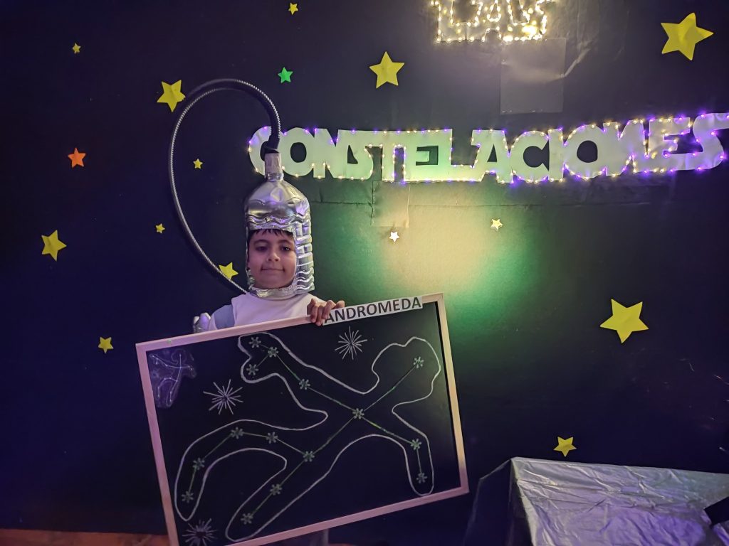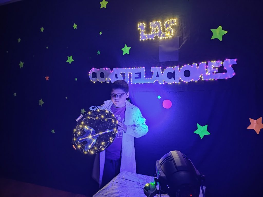 Los estudiantes de nuestro establecimiento fueron testigos de un emocionante viaje a través del universo, en una exposición realizada por los alumnos de Tercer Año Básico en la asignatura de Ciencias Naturales. Durante esta fascinante exploración, se sumergieron en la temática apasionante de las constelaciones, entre las que destacaron ejemplos emblemáticos como Andrómeda y la Cruz del Sur, Orión, por mencionar algunas. En este cautivador recorrido cósmico, deseamos expresar nuestra profunda gratitud a todos aquellos que contribuyeron para hacer posible esta experiencia tan enriquecedora.